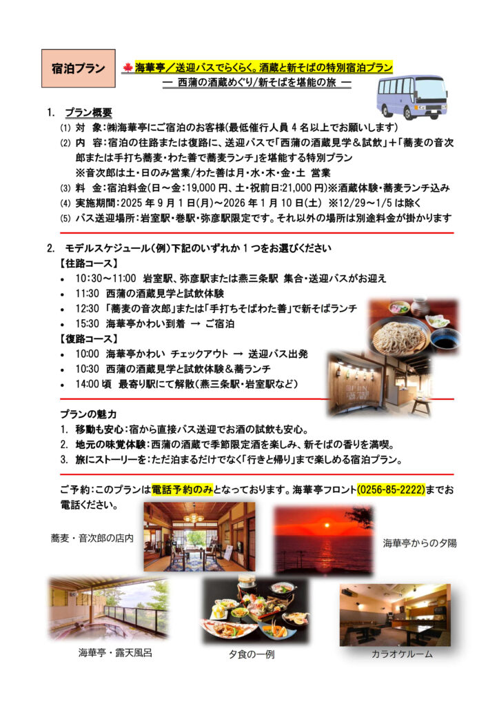 ②宿泊プラン/送迎バスでらくらく。酒蔵と新そばの特別宿泊プラン